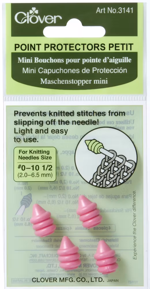 Med dessa ändskydd från Clover förhindrar du att din stickning glider av stickan. Fungerar på stickor från 2-6,5 mm.