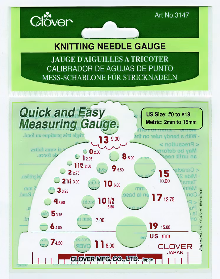 Perfekt lätt mätsticka från Clover att ha med i din projektväska för att kunna kontrollera grovleken på dina stickor. Mäthål från 2-15 mm.