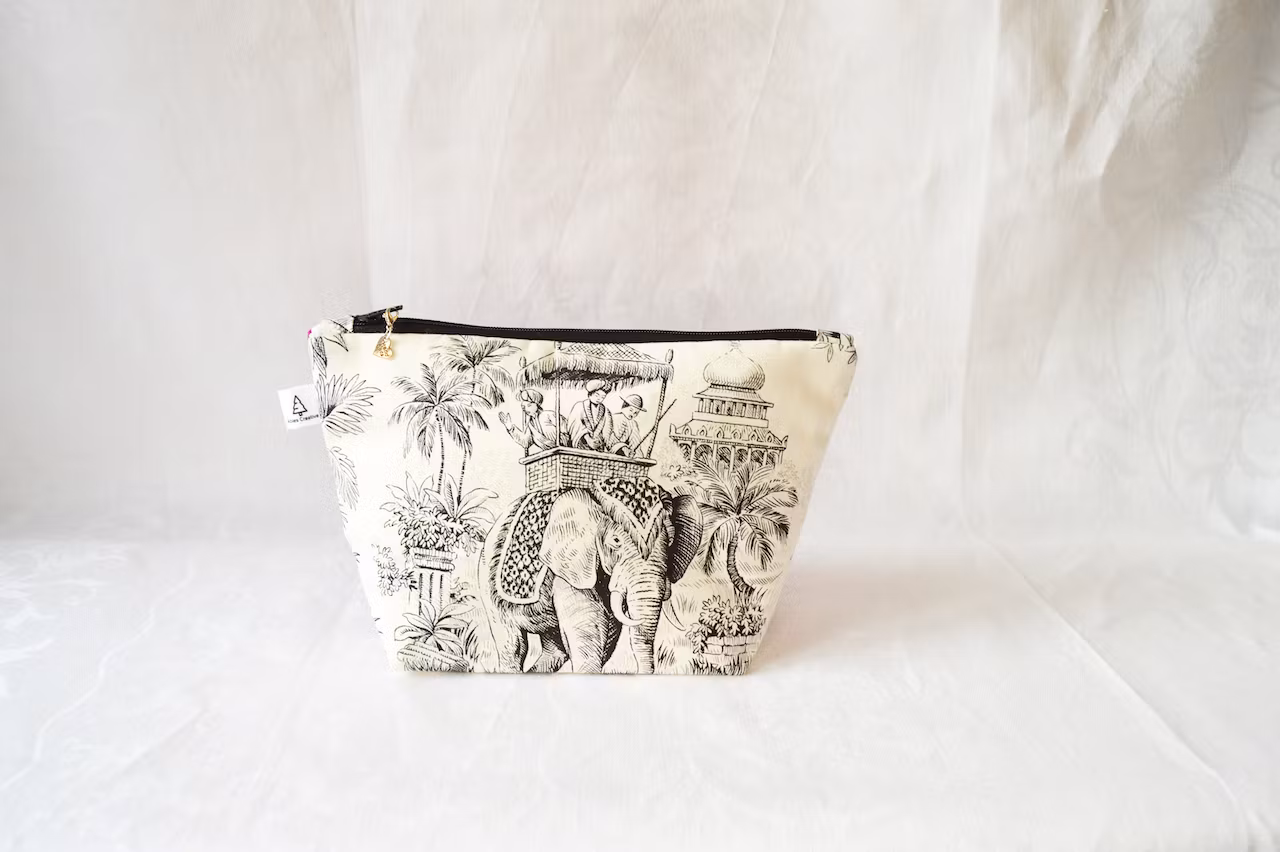 OBS! Väskornas bredd räknas vid dragkedjan. Den plana, breda botten gör att de smalnar av något mot botten. Alla väskor är handgjorda och därför kan storleken och tygets placering variera något.